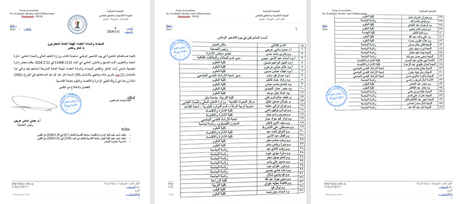 وجه مجلس ادارة الجمعية كتاب شكر و تقدير لـ (59) عضوا من اعضاء الهيئة العامة لمساهمتهم في يوم التشجير الوطني