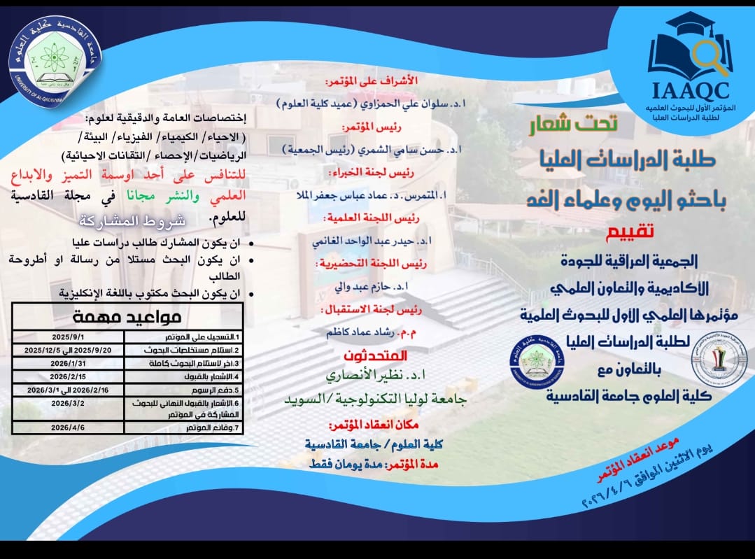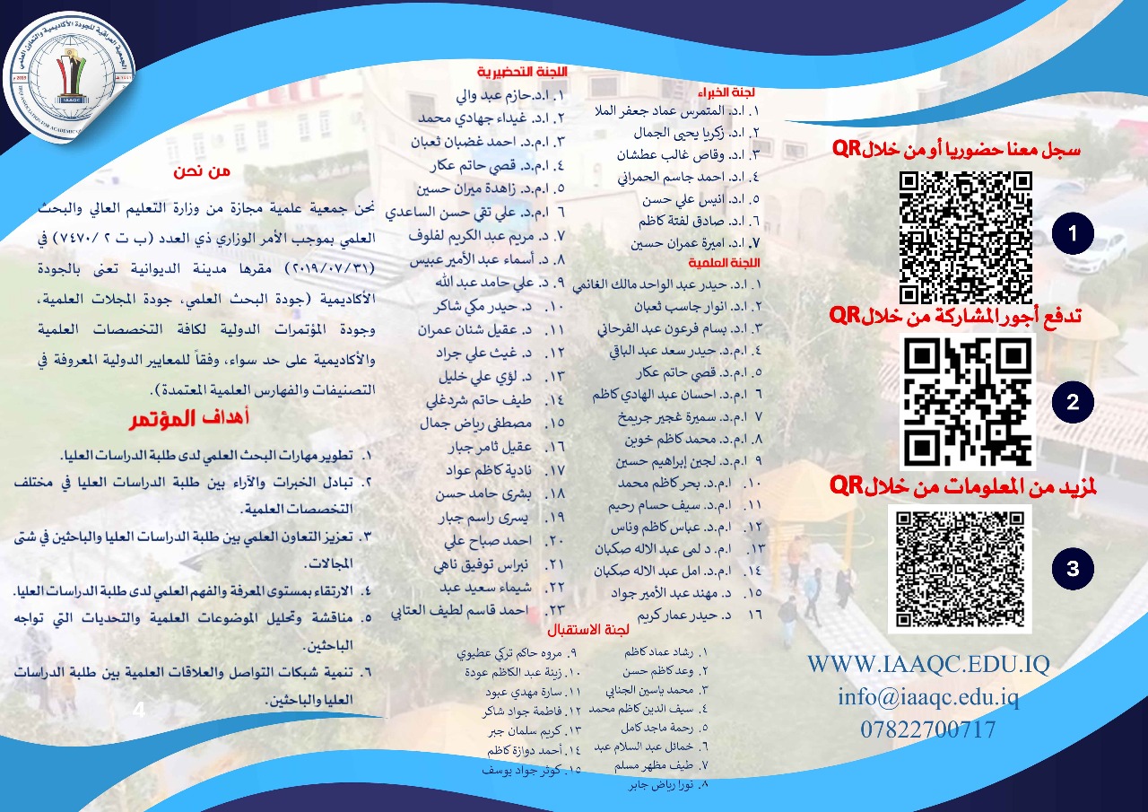 مؤتمر IAAQC الاول للبحوث العلمية لطلبة الدراسات العليا مؤتمر علمي تقييم الجمعية العراقية للجودة الاكاديمية والتعاون العلمي IAAQC… Read More